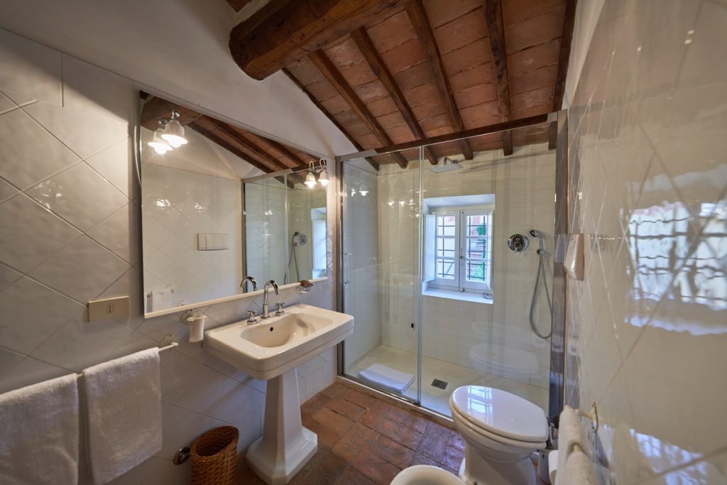 Villa Collalto after ten-year renovation of the entire estate which has included the reconfiguration of the interior to provide ensuite accommodation in every bedroom, and the inclusion of air conditioning in both bedrooms and gathering rooms. The already commodious Villa can be supplemented by several ensuite bedrooms of the same standard, but in separate buildings, to accommodate groups up to 31. There is no other villa for this number of people of such uniformly high standards for rent in Tuscany. This is truly a property with the highest standards.