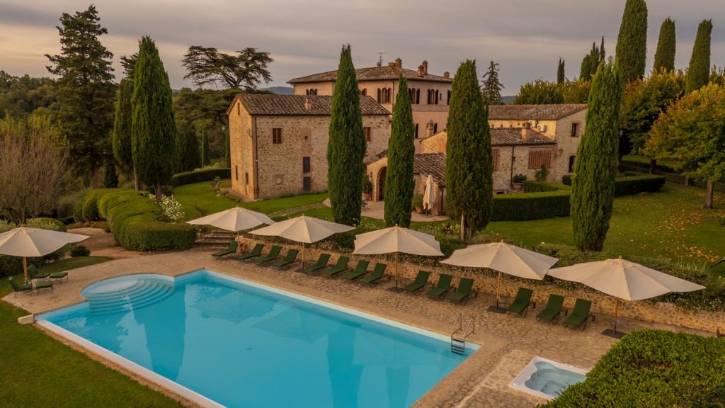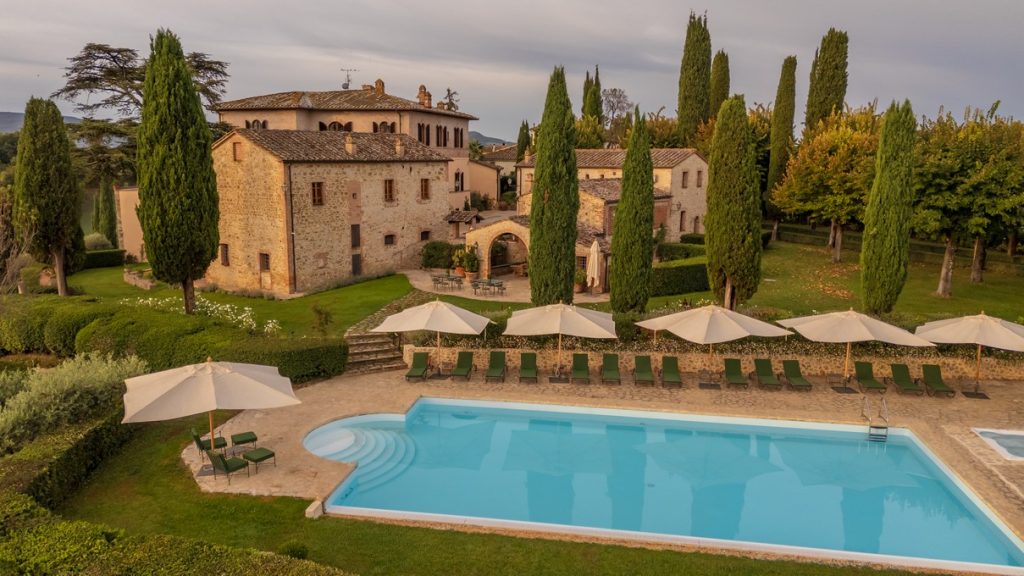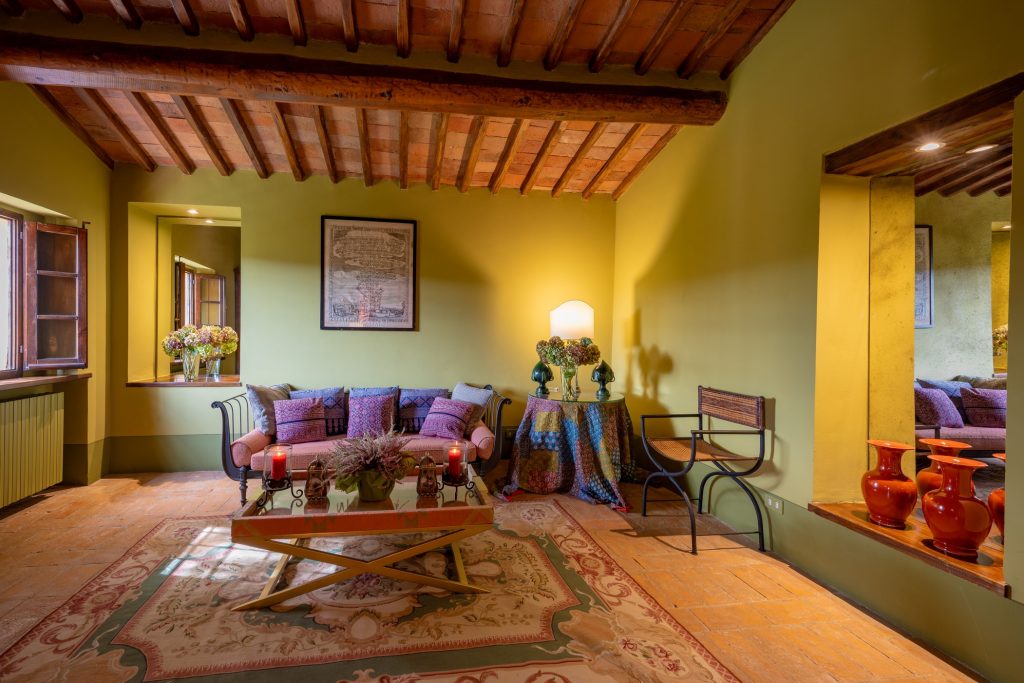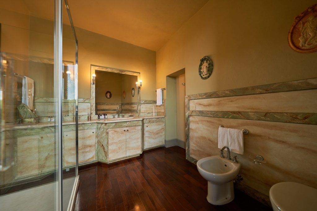 Situated in the heart of Tuscany between Siena and Florence, this villa, owned for centuries by an Italian Aristocratic Family, is encircled by spectacular gardens, offering breath taking views of the surrounding countryside. Dating back to 1400, additional construction was added between 1700 – 1800. The whole structure was restructured with loving care during 1996 – 1997.