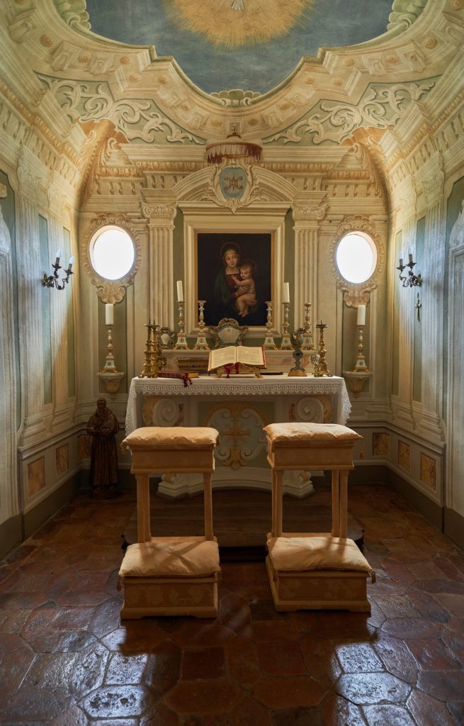 Fully restored chapel with frescoes on all walls and a painting of the ‘Madonna and Child’ over the altar.